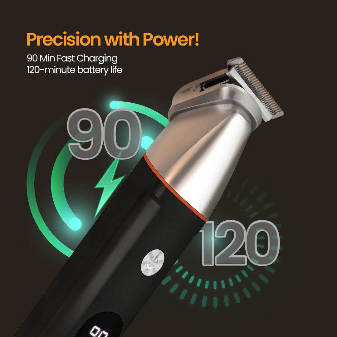 Featuring 12 high-performance attachments, including magnetic heads for quick swapping, this grooming kit brings professional-level trimming to your home routine. The high-torque 9000 RPM motor ensures a smooth, snag-free trim, while the smart LED display gives real-time feedback on battery life, cleaning reminders, and charging status.