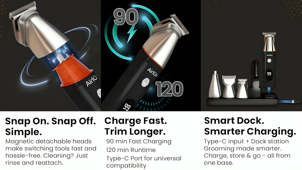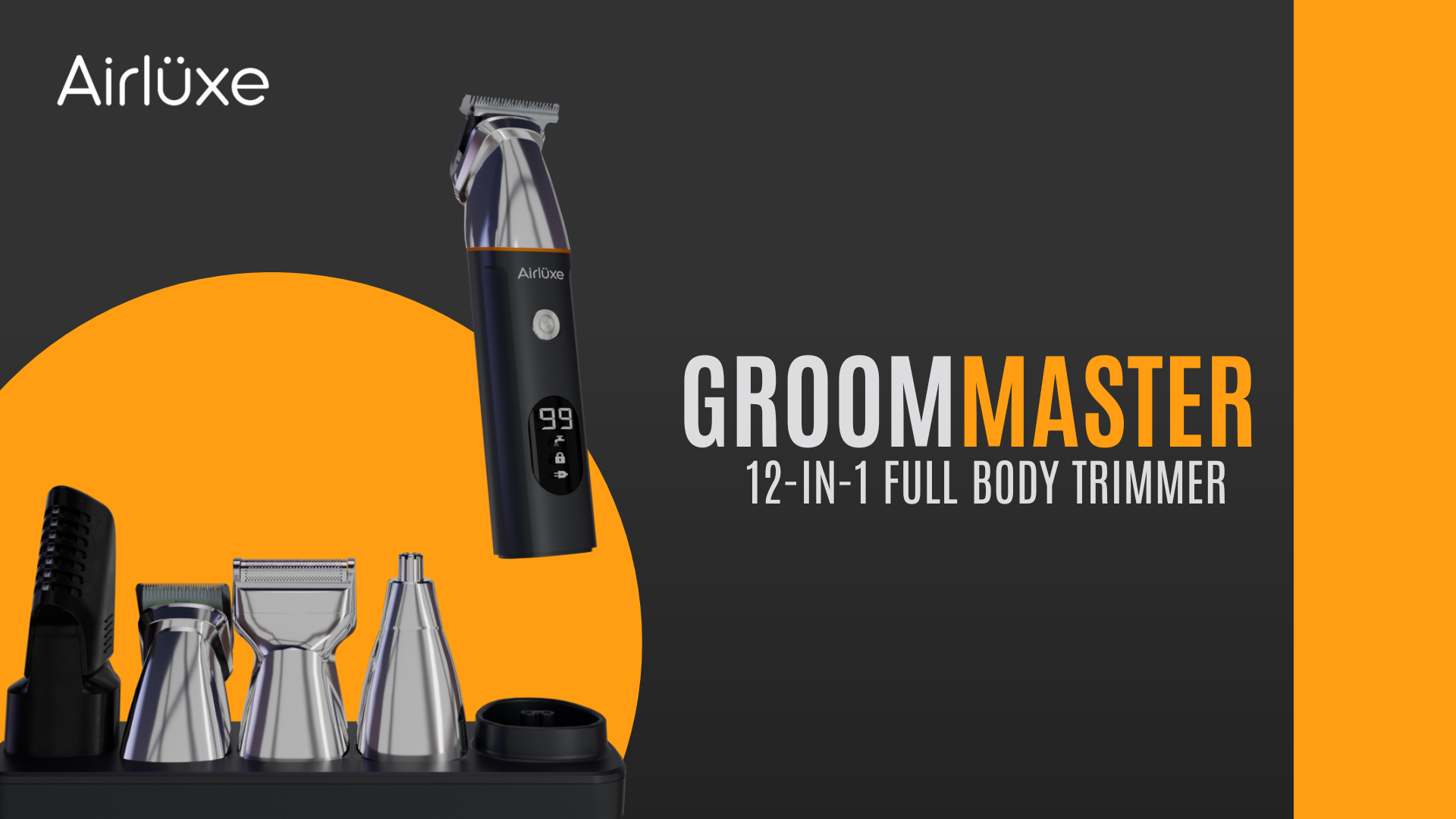 The Airluxe GroomMaster 12-in-1 Multi Grooming Kit is your all-in-one solution for precise, powerful, and comfortable grooming — from head to toe. Whether it’s your beard, body, nose, ears, or hair, this grooming system handles it all with unmatched ease and versatility.