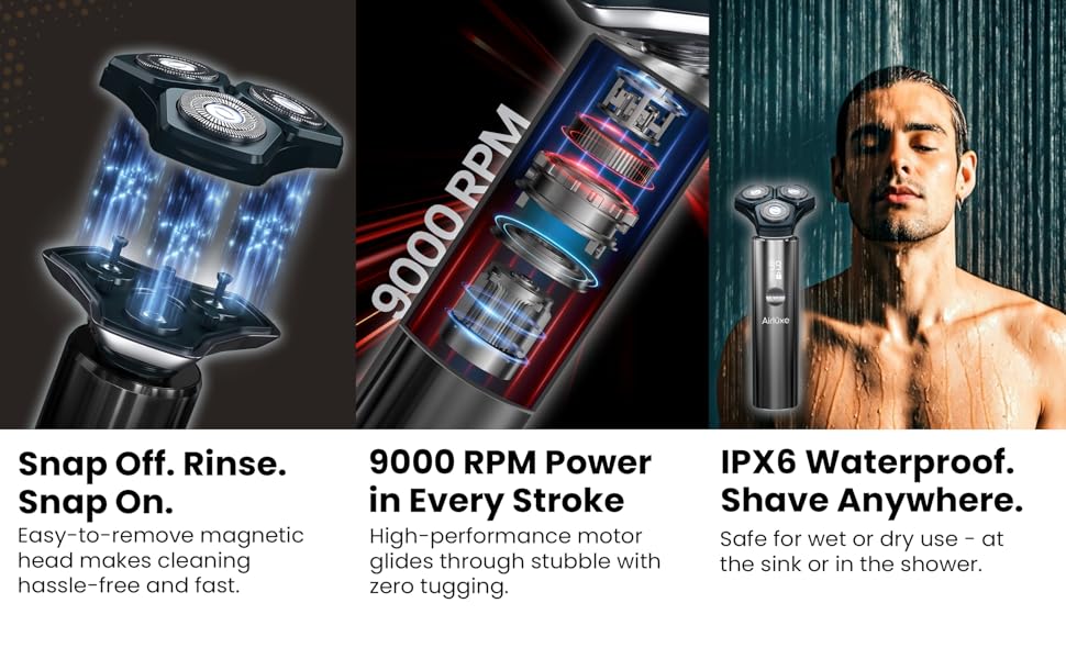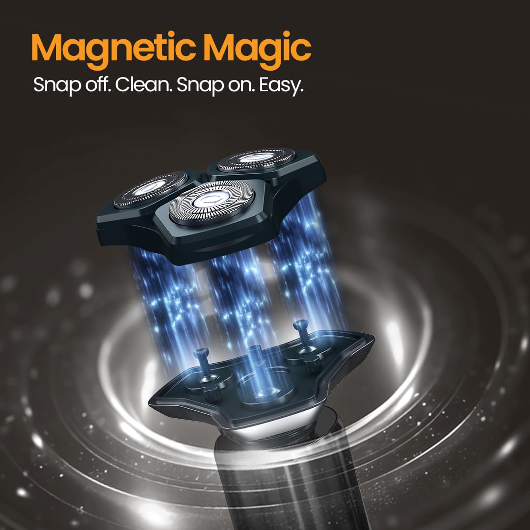 The innovative magnetic head design makes cleaning effortless. Remove the shaving head in seconds, rinse thoroughly, and reattach instantly—no tools, no hassle. Experience the effortless cleaning process with our innovative magnetic head design. Simply remove the shaving head in seconds, rinse thoroughly, and reattach instantly—no tools, no hassle.