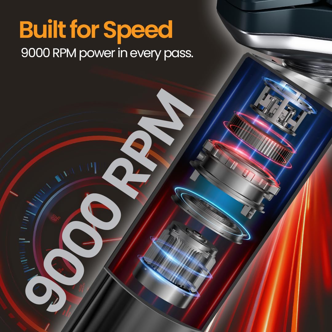 The 9000 RPM (Revolutions Per Minute) speed refers to the high-velocity motor that drives the blades of the Shavemate. In an electric shaver, a faster motor allows the blades to make more cutting actions per second, which means it can slice through even thick or coarse hair without "tugging" or "pulling," providing a much smoother and faster experience.